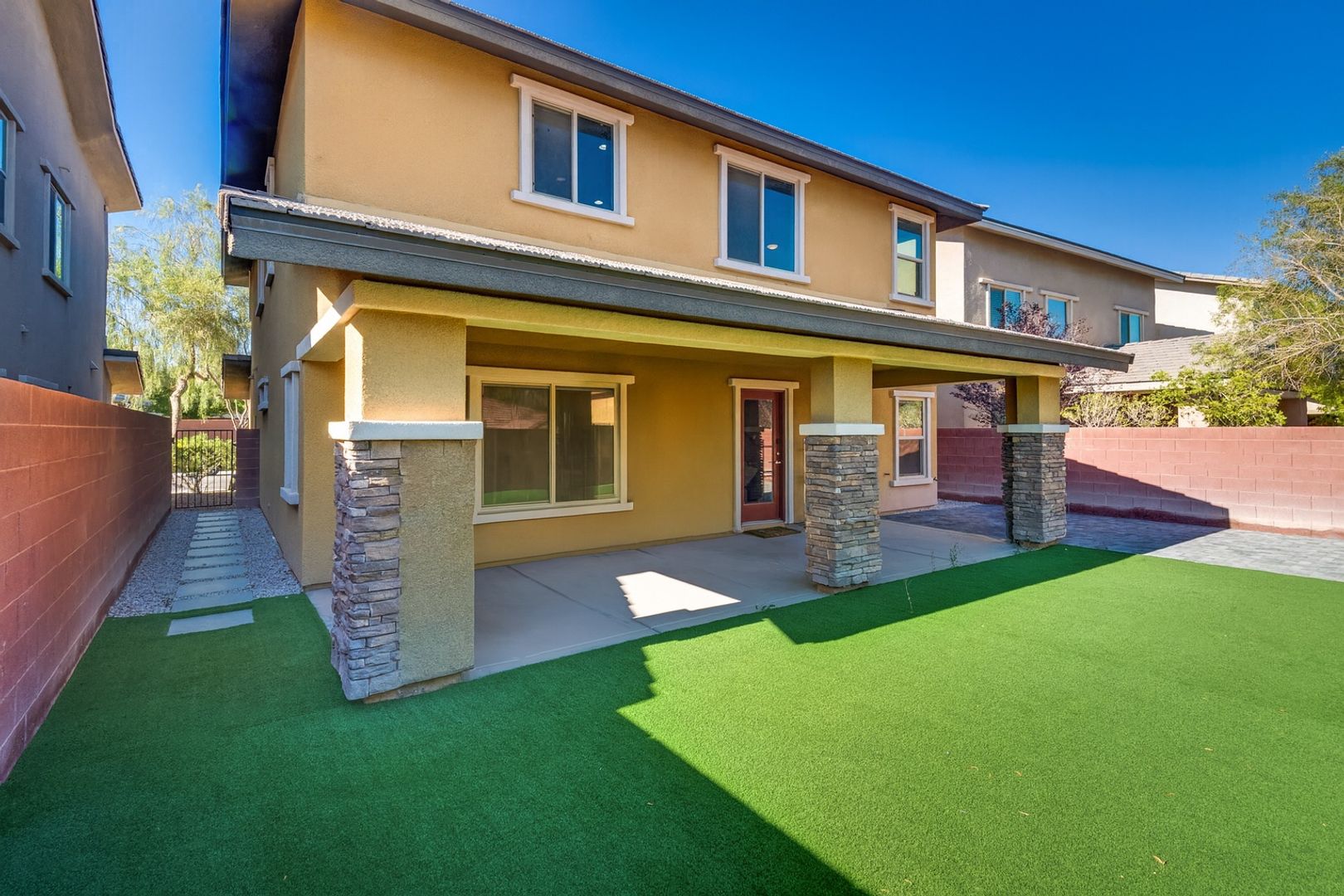 MOVE IN SPECIAL 1 MONTH FREE RENT Welcome to this stunning split-level home in the heart of Summerlin South, just a short stroll from Mesa Park. Boasting a bright, open floor plan with multiple living areas, this residence perfectly blends style and functionality. The sleek modern kitchen features stainless steel appliances, double ovens, and a large center island ideal for entertaining Downstairs, you’ll find a versatile bedroom and full bath—perfect for guests or a home office. Upstairs offers spacious living areas with updated flooring and abundant natural light. Step outside to the oversized backyard, fully with low-maintenance turf and a covered patio—ideal for outdoor dining and relaxation.Located in a desirable gated community with its own pool and park, and within walking distance to Mesa Park, this home offers the best of Summerlin living. With modern finishes throughout, a two-car garage, and easy access to community pool, parks, trails, top-rated schools, and shopping